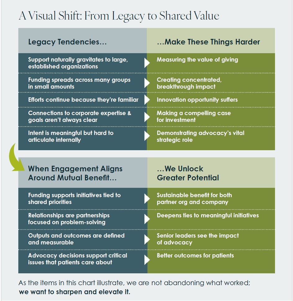 Mutual-benefit engagement reframes the central question from “What can we fund?” to “What can we accomplish together?” It transforms advocacy from a series of contributions into a strategic engine for insight, alignment, and patient-focused progress.